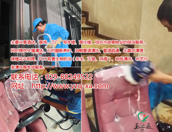 西安玉之泉物業(yè)清潔公司、西安保潔公司、西安外墻清洗、西安開荒保潔、玉之泉清潔公司、西安石材翻新養(yǎng) 護(hù)、西安清潔公司、西安清洗公司、西安布藝沙發(fā)清洗、西安管道疏通、油煙管道清洗。029-81332416