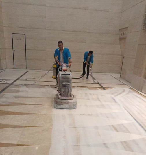 將發(fā)生污染或病變的石材,如凹凸不平的石材表面、深度劃痕、深層污點等,使用石材翻新機配合多套不同的磨盤、磨片,由粗到細,進行多次打磨、拋光,使石材在原有的基礎上恢復其本來的面貌。