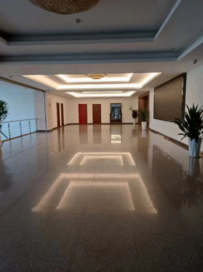 經過上述工藝之后,就可以進行結晶處理了,通過設備加壓,低速打磨,使劑品產生熱化反應,使地面形成防滑的堅硬鏡面。