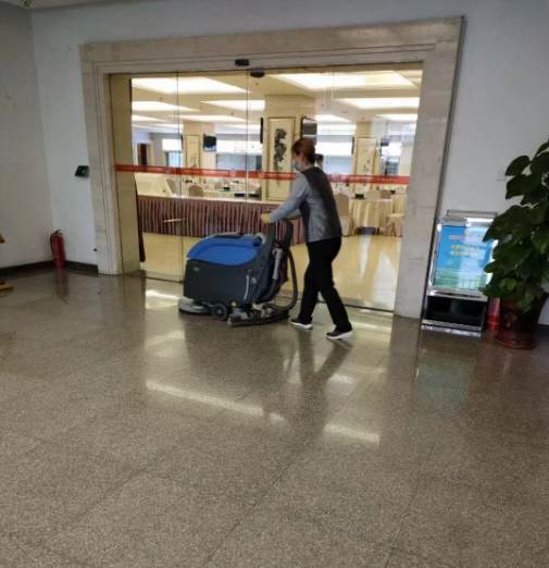 起蠟水通過兌水調配,對石面進行起蠟,并用專用擦地機刷洗,為了避免水太多滲入石面,應一邊擦洗,一邊用吸塵吸水機吸凈水蠟、污漬。