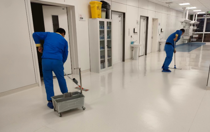 勘察現(xiàn)場(chǎng),安排從里到外清洗PVC地板。用多功能清洗機(jī),稀釋專(zhuān)業(yè)清潔劑注入機(jī)器內(nèi)清洗。清洗從輕污到重污或局部的重點(diǎn)清洗,后全面清洗。